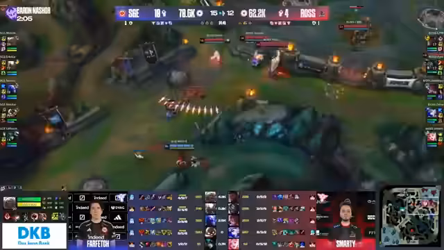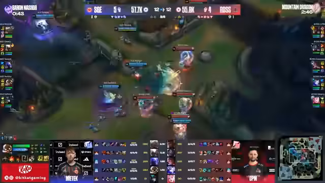 02:49:19Frankfurt legt eine Falle um Baron-Nashor, die sich jedoch als selbstzerstörerisch erweist. Rossmann macht überhastige Entscheidungen und wird brutal von Frankfurt bestraft. Senkax securet Baron und elimini mehrere Gegner, was eine deutliche Wende bedeutet. Frankfurt übernimmt die Kontrolle und gewinnt das Game trotz früherer Rossmann-Führung.