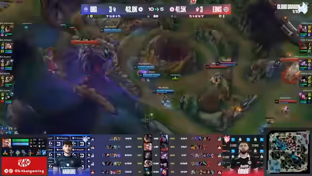 03:42:59Das Spiel ist von intensiven Teamkämpfen und Drake-Kontroversen geprägt. Zuerst sichert sich Big den zweiten Drake des Spiels, was den Goldstandegleichstand wiederherstellt. Später kommt es zu einem dramatischen Kampf um einen Drake, bei dem Habubu extrem lange überlebt und dabei als Köder dient. Die Shockwave von Rika spielt eine entscheidende Rolle in den Kämpfen. Am Ende kann Big den Drake für sich sichern, was den Goldvorteil auf 1000 Gold ausbaut.