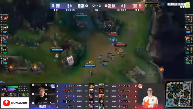 04:37:45Das Spiel beginnt mit einer eher ruhigen Early Game Phase. Beide Teams halten sich zurück und vermeiden unnötige Risiken. TOG hat eine leichte Vorteil durch ihre Composition, die im Late Game besser skalieren sollte. EWI konzentriert sich auf Vision Control und versucht, Ressourcen zu akkumulieren, anstatt direkt im Drakampf zu engagieren. Die Bot-Lane sieht eine interessante Dynamic mit Ryuk und Lilith gegen Afro Boy und Caitlyn.