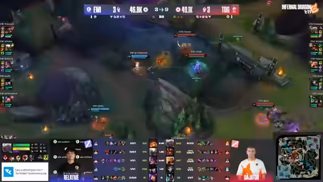 04:46:52Das Spiel 进入 Late Game Phase, wo Entscheidungskämpfe um Baron und Drakes im Fokus stehen. Beide Teams zögern, initiating fights, aus Angst, den Vorteil zu verlieren. TOG holt sich schließlich den Baron nach mehreren gescheiterten Versuchen von beiden Seiten. Nach dem Baron hat TOG mehr Kontrolle über das Spiel, kann aber den Sieg nicht sofort sichern. EWI zeigt beeindruckende Comeback-Versuche, indem sie strategisch Drakes kämpfen und Vision nutzen.