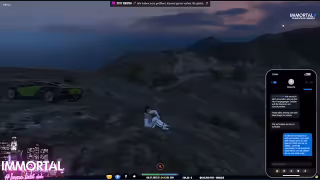 02:39:00Der Streamer beobachtet eine sich entwickelnde Razzia von außen, bei der Personen wie Gurken erwähnt werden, was auf eine typische RP-Situation hindeutet. Er versucht, sich unauffällig zu verhalten, während er Massimo vorbeifahren lässt, um die Situation zu beobachten. Gleichzeitig beginnt eine neue interaktive Rolle, in der er sich verletzt und eine Reparatur benötigt, was die Aufmerksamkeit der Anwesenden auf sich zieht und zu weiteren Gesprächen führt.