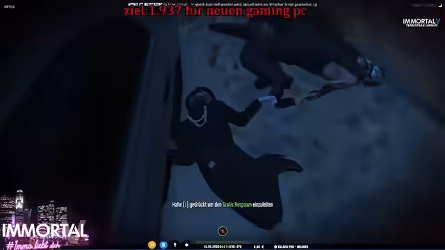 00:15:21Der Streamer geht auf seine Besitztümer ein, darunter ein neues Elektroauto, das er für 800 gekauft hat, und einen Lambo. Er zeigt seine Lackierungen: schwarz-violett und grün für den Lambo. Sein Dumbo besitzt emotionale Bedeutung, da er damit seinen Immo Performance abgegeben hat. Zudem wird die Gameplay-Mechanik des Funkgeräts erklärt, wie man es über die Handy-Einstellungen auf einen der fünf Finger legen kann, für einen schnelleren Zugriff.