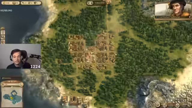 01:00:14Nach den technischen Hürden beginnt der Streamer, die ersten Bauaufträge zu erledigen, wie Holzfällerhütten und Bauernhäuser. Er erkundet die Spielmechaniken und stellt fest, dass sich die Marktplatz- und Lagerhaus-Logik im Vergleich zu anderen Anno-Teilen geändert hat. Er baut eine Kapelle und ist von der Grafik und dem Soundtrack des Spiels begeistert, der ihn an seine Kindheit erinnert. Gleichzeitig kündigt er einen anstehenden Content-Plan für die kommende Woche an, mit einem Talk über Anno 117.