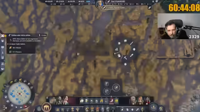 00:00:47Der Stream mit dem Ziel von einer Million Einwohnern in Anno wird gestartet. Der Streamer berichtet über einen schwierigen gesundheitlichen Tag, da ihn Cluster-Kopfschmerzen erneut erfasst haben, was seine ursprünglichen Plungen durchkreuzt hat. Trotzdem beschließt er, das Stream fortzusetzen, um aus dem 'Tunnel' herauszukommen, und hofft, dass das Internet diesmal stabil bleibt, nachdem es bei vorherigen Aufnahmen zu massiven Problemen kam, darunter ein plötzlicher Tonverlust.