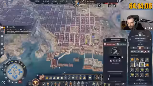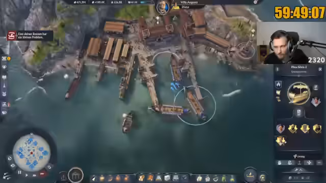 00:05:05Nach dem Wechsel in ein anderes Savegame stellt der Streamer weiterhin unklare technische Probleme fest, insbesondere den fehlenden Ton in der Aufnahme, den er sich nicht erklären kann. Der Fokus liegt auf dem Spiel Anno, wobei er die Schönheit des Spiels lobt, besonders die vorgefertigten Stadtteile und die Umgebung, die man selbst mit hässlichem Bau nicht ruinieren könne. Das Ziel ist es, Reddit-Screenshots zu posten und die Stream-Performance zu verbessern.