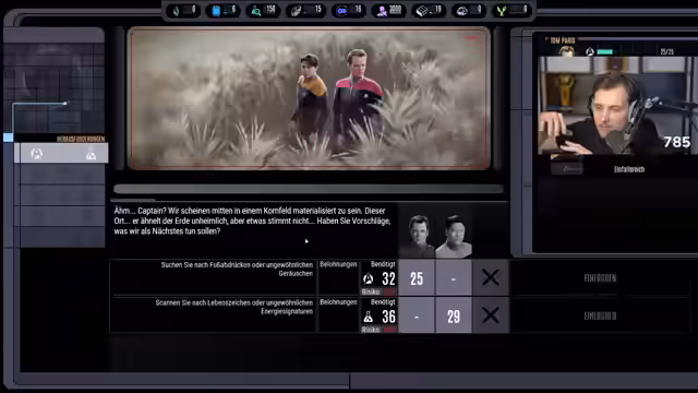 01:31:21Der Streamer führt die erste Hauptmission durch: die Suche nach den verschwundenen Ocampa. Er leitet ein Außenteam an, interagiert mit Charakteren wie Neelix und trifft auf die Kazon. Entscheidungen im Spiel haben Konsequenzen, was zu kritischen Situationen wie einem Sandsturm führt. Nachdem das Team gerettet ist, deckt das Spiel die Zusammenhänge auf: der 'Fürsorger' ist sterblich und hat die Ocampa unter der Erde angesiedelt, nachdem er ihre Heimatwelt zur Wüste gemacht hat. Diese Mission legt die Handlung der ersten Staffel von Star Trek Voyager dar.