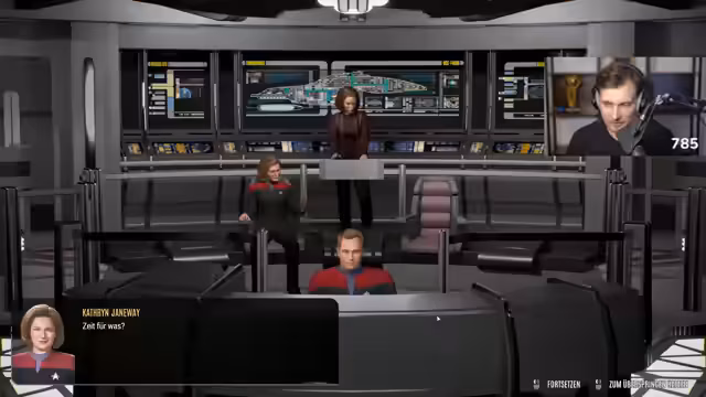 00:23:09Die Story des Spiels leitet direkt in die Handlung der Serie ein. Sicherheitschef Tuvok hat einen Spion bei den Maquis eingeschleusst, die im Badlands verschwunden sind. Da der Streamer ein Experte für diese Gegend ist, bietet ihm Janeway an, diese Aufgabe zu erledigen, im Austausch für seine Freilassung. Er betritt das brandneue Schiff der USS Voyager. Seine erste Mission führt das Schiff in die Badlands, wo es von einem Tetrion-Strahl erfasst und 70.000 Lichtjahre in den Delta-Quadranten katapultiert wird, wo das Schiff schwer beschädigt liegt.