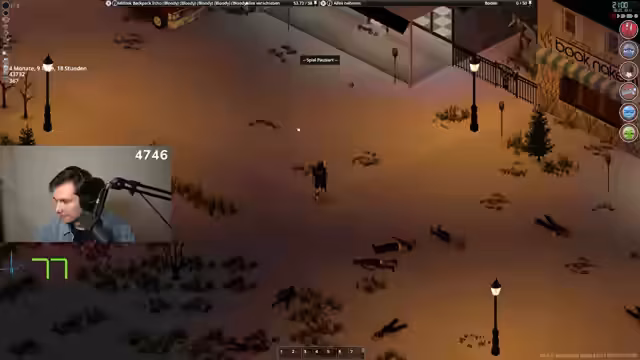 04:41:12Der Streamer bedankt sich für einen Raid und erkundigt sich nach den Aktivitäten der Community. Er spricht über das aktuelle Gameplay in Project Zomboid, wo er mit einer Shotgun gegen Zombiehorden kämpft. Es wird erwähnt, dass das neueste Update für Project Zomboid Tiere, Landwirtschaft und ein neues Schusssystem beinhaltet. Der Streamer kündigt an, dass er am Sonntag als Schokobon verkleidet Project Zomboid streamen wird und morgen um 18 Uhr einen neuen Partner vorstellen wird. Es wird überlegt, ob es in Kentucky Wölfe und Bären gab, was aber verneint wird. Der Streamer berichtet über den Fortschritt im Spiel, einschließlich der Anzahl der geclearten Städte und der erreichten Kills, wobei die Zählweise aufgrund der Shotgun ungenau ist. Er äußert sich zur hohen Zombie-Dichte in Brandenburg und lobt das Gameplay des Spiels.