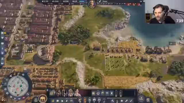 00:30:21Trotz Albion-Booster und Notfall-Upgrades bleibt die wirtschaftliche Lage prekär. Der Spieler versucht, durch Hanfanbau und Schuhproduktion Einnahmen zu generieren, wird jedoch von Neferneros Truppen überrollt, der mittlerweile sechs Inseln kontrolliert. Die KI überschreitet eine Militärstärke von 12.000, während der Spieler kaum 1.000 erreicht. Letzte Hoffnungen liegen in der Freischaltung von Eisenforschung und Verhandlungen mit anderen KIs, um Zeit zu gewinnen – doch die Niederlage scheint unausweichlich.