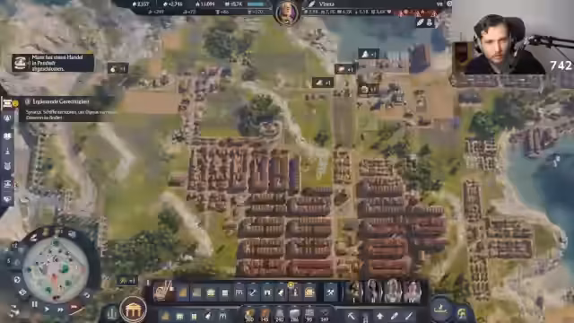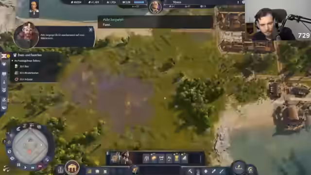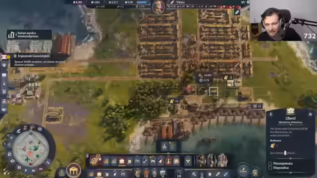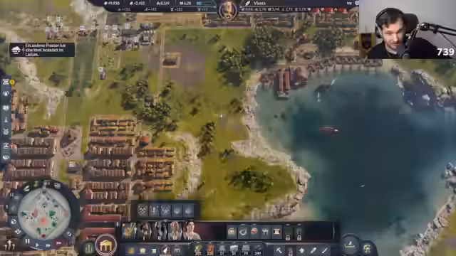 01:10:21Der Spieler verliert früh im Spiel ein wichtiges Schiff und kämpft mit Ressourcenknappheit, insbesondere bei Eisen und Waffen. Die KI-Gegner nehmen rasend schnell Inseln ein, was als unrealistisch und herausfordernd empfunden wird. Arbeitskräftemangel und Fehlentscheidungen beim Upgraden von Gebäuden verschärfen die Situation. Diskussionen über die schwierige Balance zwischen Wohnraum und Produktion prägen diesen Abschnitt, während der Spieler versucht, seine Wirtschaft zu stabilisieren.