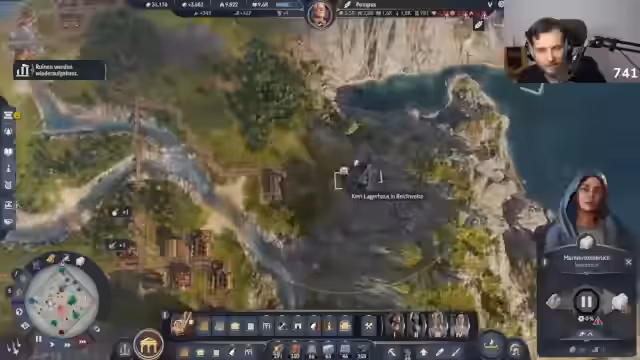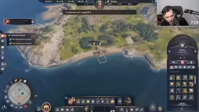 00:07:08Der Spielstart in Albion gestaltet sich extrem knapp: Die fehlende Startinsel und begrenzte Rohstoffe führen zu Geldmangel. Durch Quests und den Verkauf von Waffen wird versucht, die Bilanz zu stabilisieren. Arthur, eine schwere KI, greift früh an und zwingt zur Truppenbildung. Gleichzeitig werden Inseln erkundet, um dringend benötigtes Eisen zu beschaffen. Die KI-Gegner wie Nefernero nutzen Cheat-Mechaniken und besetzen bereits fünf Inseln, was die asymmetrische Ausgangslage unterstreicht.