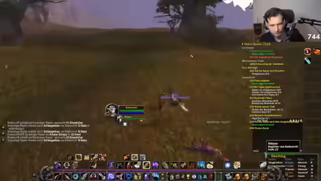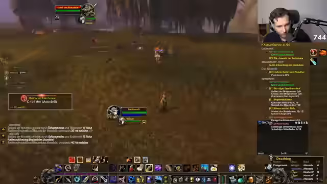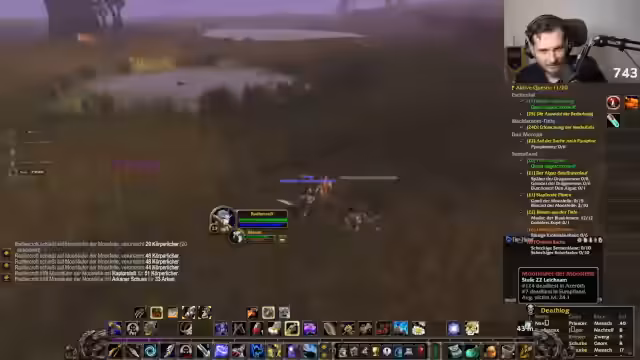 04:20:18Nach dem Giveaway steigt der Streamer zurück ins Hardcore-World-of-Warcraft-Gameplay ein. Diskutiert werden Levelstrategien, Zielsetzungen (Level 25 anstreben) und erste Erfahrungen im Gebiet Eschenthal. Dabei werden Mechaniken wie Pet-Management und defensive Talente thematisiert.