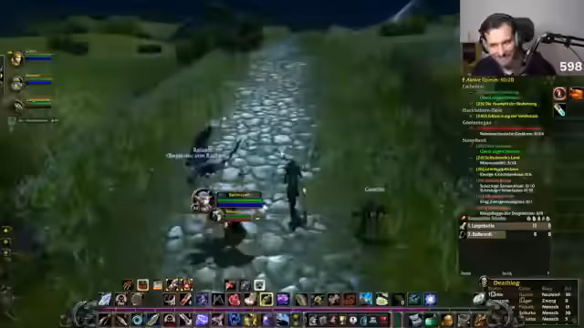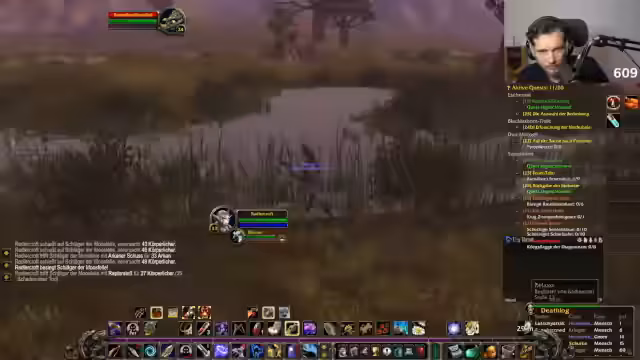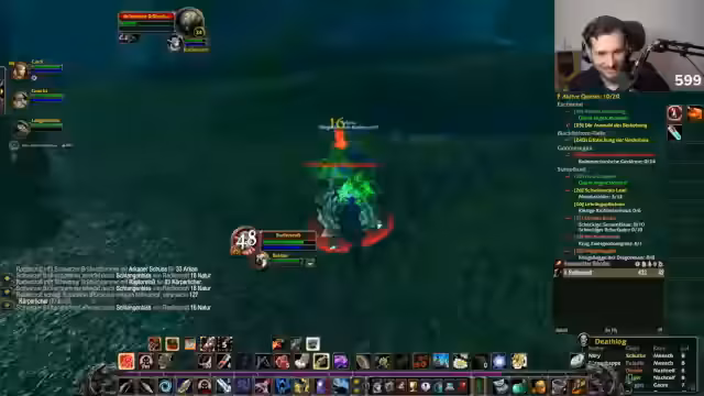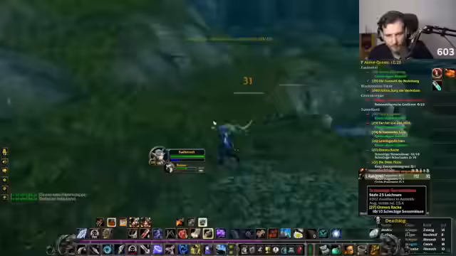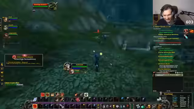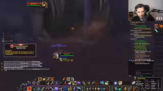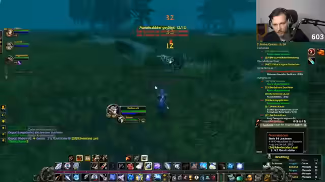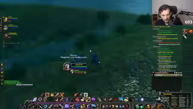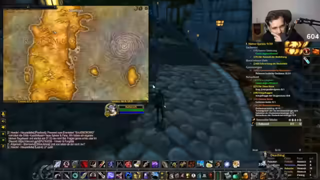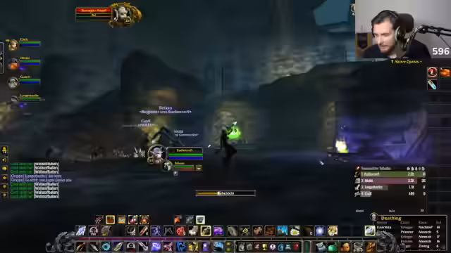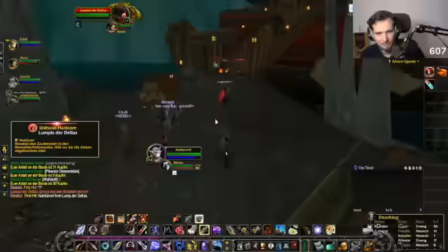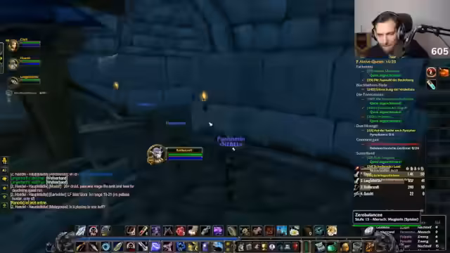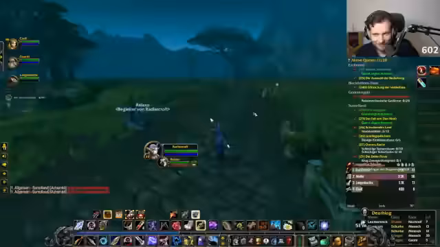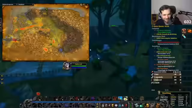 09:31:09Radlerauge betritt erstmals die Deadmines und beschreibt seine Eindrücke als Neuling in WoW-Dungeons. Er interagiert mit Teammitgliedern, die ihm Mechaniken wie das Wegpacken des Pets vor Sprüngen erklären. Der erste Boss wird besiegt, während Loot-Systeme und Quest-Sharing diskutiert werden. Neben technischen Anpassungen (Map-Transparenz) reflektiert er seine anfängliche Nervosität und die Unterstützung durch erfahrene Spieler.