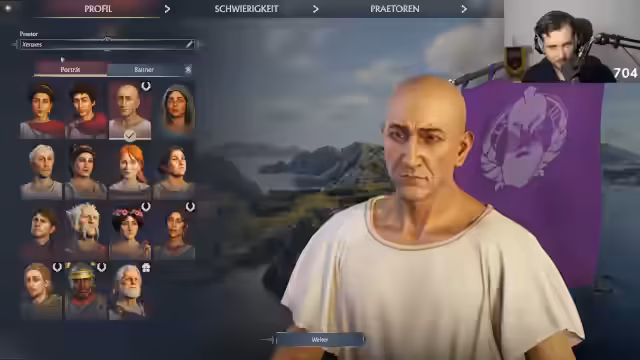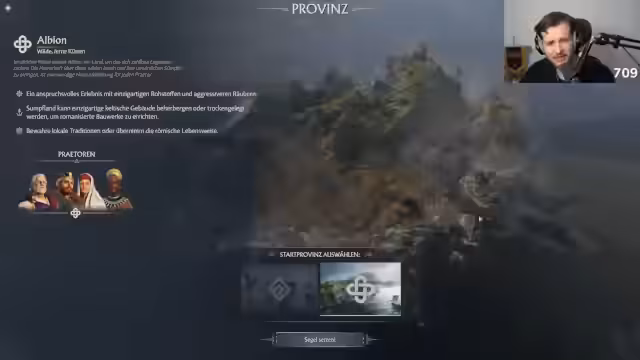 00:01:10Der Stream beginnt mit einer Verspätung und der Ankündigung der 'ultimativen Anno-Challenge' auf maximaler Schwierigkeit. Der Spielstart erfolgt bewusst in Albion statt im üblichen Latium, was die Herausforderung zusätzlich erschwert. Die Einstellungen wurden manuell über das Legenden-Preset hinaus angepasst: Gebäudepositionierung deaktiviert, Baukostenerstattung gebührenpflichtig und vollständige Instandhaltungskosten. Als Spielercharakter wird 'Maximus Difficilus' gewählt, und der Seed 6969 wird festgelegt, um den aggressiveren KI-Gegnern nach dem Patch zu begegnen.