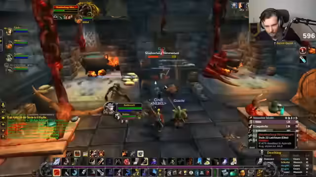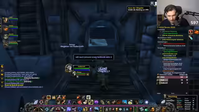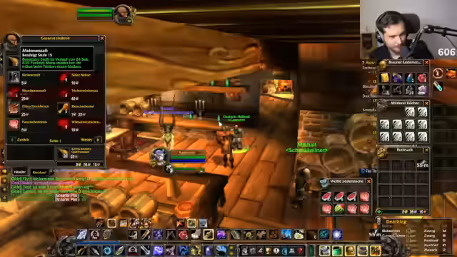 12:21:28Während der laufenden Burg-Schattenschwert-Instanz wird die Dynamik mit der Community diskutiert, inklusive Tipps zu Addons und Spielmechaniken. Der Humor kommt nicht zu kurz, etwa durch Ideen, die Reaktionen anderer Streamer zu provozieren. Gleichzeitig werden praktische Herausforderungen wie volles Inventar und Rollenverteilung im Team thematisiert.