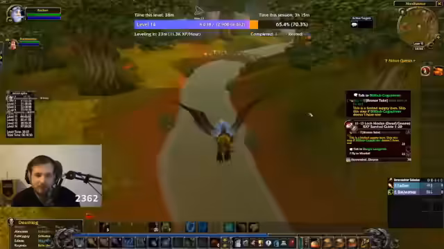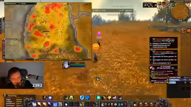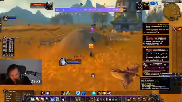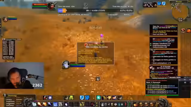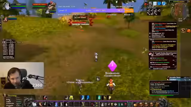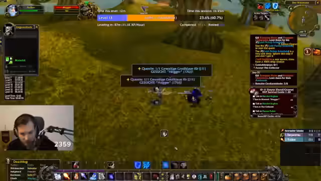 00:25:11Der Streamer geht auf das laufende Hardcore-Event ein und berichtet über Todesfälle anderer bekannte Streamer, wie Salty auf Level 42 und Power of Evil auf Level 46. Dies verdeutlicht die hohen Risiken im Hardcore-Modus. Gleichzeitig holt er die Community aktiv ins Spiel, indem er einen Zuschauer namens Ranger zum gemeinsamen Questen einlädt. Er unterstützt ihn bei der Sammelquest nach Holzbündeln in Westfall, was die Kooperation und den gegenseitigen Support im Stream zeigt.