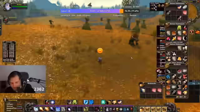 00:16:53Nach den technischen Schwierigkeiten konzentriert sich der Streamer auf das Gameplay. Ein neuer Charakter, ein Mage auf Level 47, wird eingeführt. Es wird eine Diskussion über den Wechsel von der Hunter- zur Mage-Klasse angestoßen. Der Streamer erklärt, dass die Mage-Klasse, obwohl sie weniger aushaltbar ist, mehr Spaß macht, da er mit Feuerballen "blasten" und durch Area-of-Effect-Spells Mobs effizienter farmen kann. Der Fokus liegt auf einem aggressiven Spielstil statt auf maximaler Sicherheit.