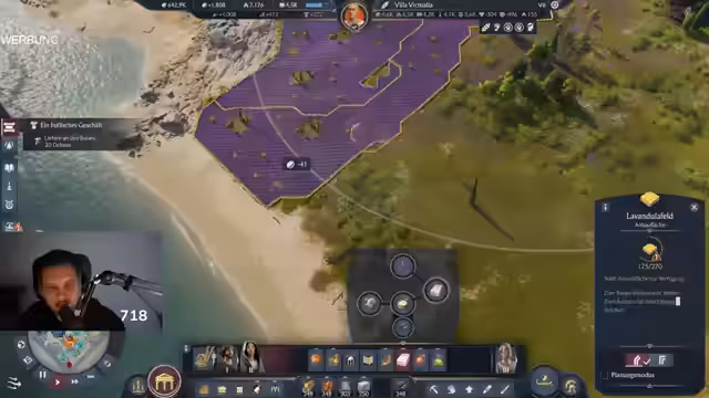 01:33:36Nach einer kurzen Unterbrechung kehrt der Streamer zum Gameplay zurück. Er konzentriert sich darauf, einen „Treasure Train“ zu starten, um Rabatte zu aktivieren, und setzt seine Bauvorhaben fort. Der Ton bleibt motivierend und leidenschaftlich. Gleichzeitig wirbt er weiterhin für sein neuestes Video mit den zehn Gründen für Anno 117 und appelliert an die Community, alle Menschen zu finden, die das Spiel noch nicht kennen. Das Ziel ist klar, möglichst viele neue Spieler für das Spiel zu begeistern und die Drops einzusammeln.