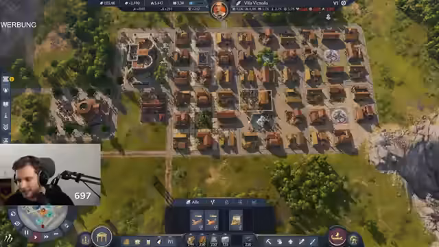 00:40:32Zurück im Spiel werden verschiedene Baustrategien für Anno 117 diskutiert. Der Streamer stellt den Chaos-Bau als die überlegene Option dar, die maximale Freiheit bietet, aber auch der Skandal-Bau als unterhaltsame Herausforderung. Andere genannte Stile sind der Rekordbau, der Minimalismus und der Militarismus. Der Streamer betont, dass das Spiel die absolute Freiheit bietet, „genauso hässlich zu bauen, wie man es haben will“, und er sucht nach neuen Wegen, um im Spiel für unerwarteten und schockierenden Content zu sorgen.