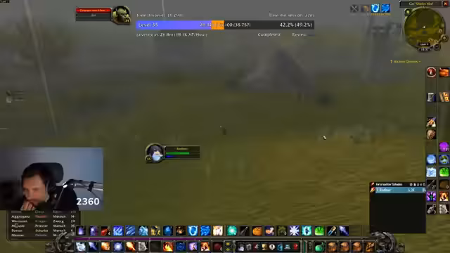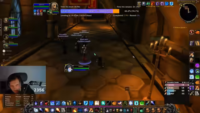00:33:36Der Streamer genießt das Mage-Spiel viel mehr als den Jäger, den er als langweilig empfindet. Er plant, mit Radler Dungeons wie das Kloster zu farmen, um World Buffs zu nutzen und effizienter zu leveln. Die Diskussion beinhaltet die Möglichkeit, die Waffenkammer mit World Buffs anzugreifen, um bessere Ausrüstung zu erhalten. Der Adrenalinkick des AOE-Farmens wird als wesentlich für das Gameplay betont.