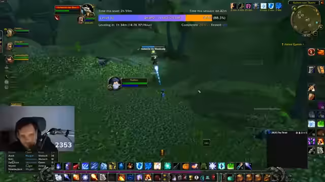 08:30:32Die Gruppe kämpft in Schlingendorntal gegen Murlocs und andere Gegner. Der Streamer bemerkt, dass sie nur langsam Ohren sammeln, obwohl sie viele Gegner töten. Sie diskutieren, ob sie die Murloc-Quest mit dem Buff in 10 Minuten schaffen können, und planen, nach dem Töten der Murlocs weitere Tafeln zu sammeln. Es gibt Überlegungen, ob sie das Lager ausrotten sollten, obwohl der 42er Elite-Boss in einer Höhle zu stark ist. Der Streamer reflektiert über Fehlentscheidungen und die Notwendigkeit von Vorsicht in gefährlichen Gebieten.
