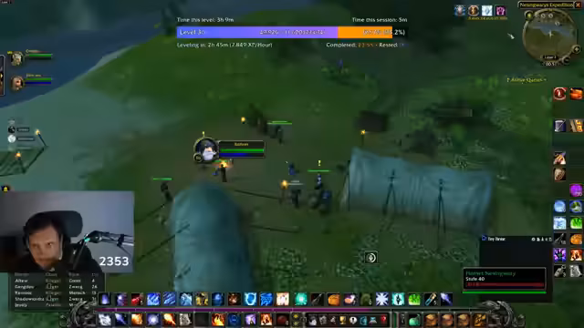 00:04:38Der Streamer startet mit einem Mage in World of Warcraft und versucht AOE-Farming in Arathi. Es gibt Herausforderungen mit dem Mangel an Wollstoff, der die Ausrüstung beeinträchtigt. Er interagiert mit einem Spieler namens Suki, der ihm Materialien besorgt, und stellt fest, dass viele andere Spieler gerade mit dem Leveln beschäftigt sind, was den Marktmangel erklärt. Die Gegner sind stark, und das Farmen ist riskant, aber er genießt den Adrenalinkick.