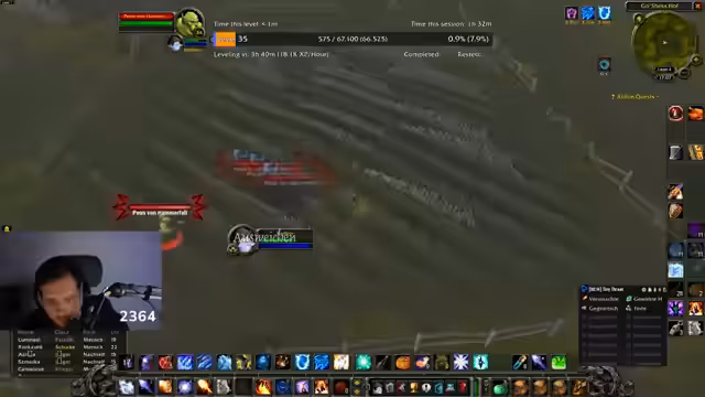 10:35:49Der Streamer verabschiedet sich und kündigt an, morgen weiterzuspielen, mit Fokus auf AOE-Farm und Questen. Er erwähnt, dass er sich nicht mehr rasiert, bis er Level 60 erreicht, und wünscht dem Zuschauern Spaß. Es gibt persönliche Bemerkungen über das Alter und Erfahrungen im Spiel, bevor der Stream beendet wird.