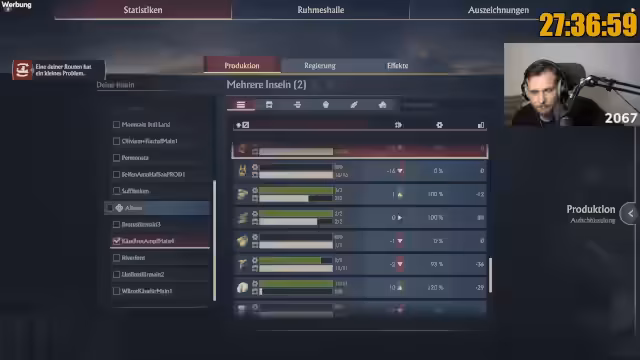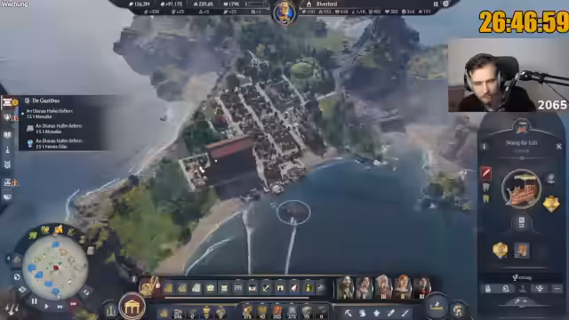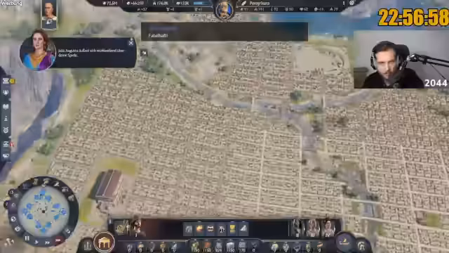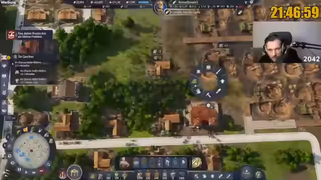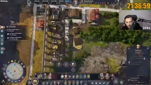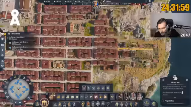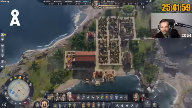 07:42:26Der Streamer berichtet über den aktuellen Fortschritt im Marathon: 250.000 Einwohner sind erreicht, was einem Viertel des Ziels entspricht. Er fühlt sich entspannt und der 'Grind ist am Grinden'. Es gibt jedoch weiterhin Probleme mit der Arbeitskraftversorgung und dem Olivenöl, was zu einer 'Inbalance' führt. Er kann nicht nachvollziehen, warum plötzlich weniger Bauern vorhanden sind, obwohl die Grundversorgung mit Haferbrei und Fisch voll ist. Es wird auch die Notwendigkeit erwähnt, mehr Austernbänke zu bauen. Die Kampagne endet, sobald keine Quests mehr angezeigt werden, typischerweise nach der Rückkehr aus Albion. Der Streamer plant, weitere Produktionsgebäude in die Stadt zu bauen, um Boni zu erhalten und ungenutzten Platz zu füllen, insbesondere für Lehm und Harz.