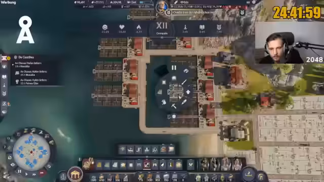 05:03:01Der Streamer ist aktuell im 25. Safe-Stunden-Modus seines 117-stündigen Anno-Marathons, dessen Ziel es ist, eine Million Einwohner zu erreichen. Er erklärt, dass der Timer für diesen Marathon läuft und es sich um eine "Mission Impossible" handelt, insbesondere hinsichtlich der Versorgung der Bevölkerung. Die Produktion von Gütern wie Stören wird derzeit sowohl in Albion als auch in Latium betrieben, wobei geplant ist, sich später hauptsächlich auf Albion zu konzentrieren, da in Latium die Flussbauplätze für Störe benötigt werden. Es wird auch die Frage diskutiert, ob eine Million Einwohner realistisch sind, und der Streamer gibt zu, dass es "nicht leicht" wird. Er vergleicht die Herausforderung mit einem Warenrechner, der die gigantischen Mengen an benötigten Gütern aufzeigt, wie zum Beispiel 144 Tonnen Käse oder 225 Tonnen Störe pro Minute, was die Dimensionen des Vorhabens verdeutlicht und die Notwendigkeit einer extrem effizienten Logistik unterstreicht.
