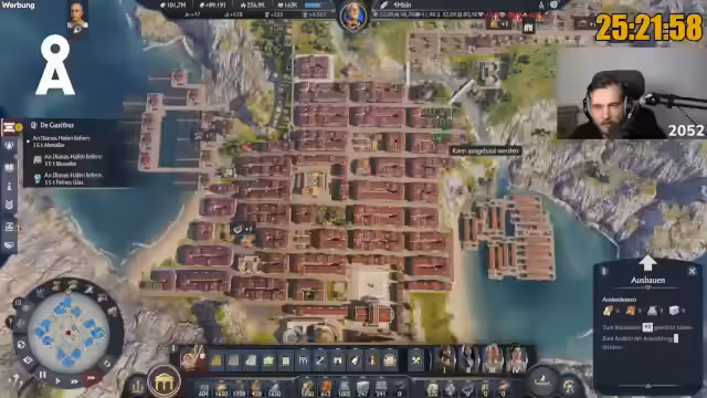 06:46:51Der Streamer erläutert, welche Produktionsgebäude in der Stadt platziert werden sollten. Er empfiehlt, am Anfang Gebäude zu wählen, die das Einkommen steigern, und später solche, die das Ansehen erhöhen, je nach den Bedürfnissen der Stadt. Er verweist auf ein YouTube-Video mit einem entspannten Startlayout, das Anfängern den Einstieg erleichtern soll. Mit über 3000 Stunden Spielzeit in Anno 1800 und ähnlichen Kernmechaniken in Anno 117 betont er, dass Erfahrung eine große Rolle spielt. Das Spiel mache viel Sinn, sobald man sich eingearbeitet habe, und das empfohlene Startlayout biete eine funktionierende Basis für den Aufbau der Stadt. Die Kampagne wird als etwa fünf bis sechs Stunden lang beschrieben, endend nach der Rückkehr von Latium.