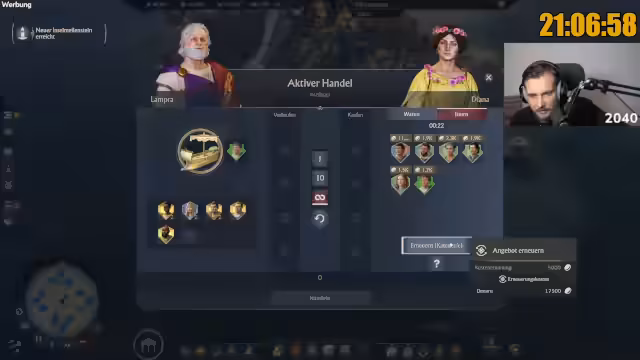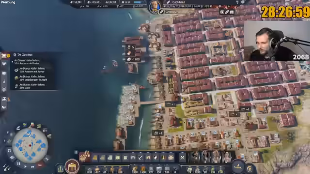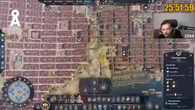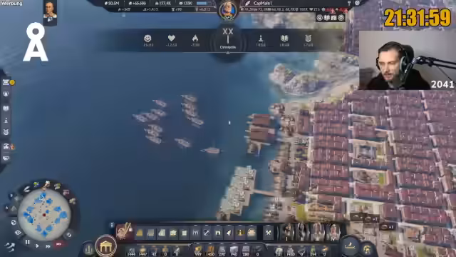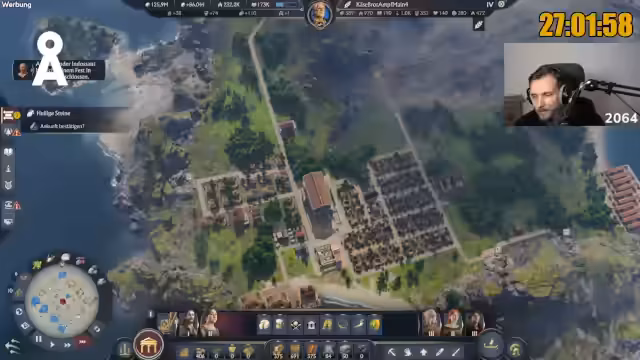 00:00:40Nach einer lockeren Begrüßung der Community beginnt der Stream mit einer Mischung aus Smalltalk und persönlichen Anekdoten. Der Streamer berichtet von einem Ausflug in Berlin und teilt seine Gedanken zum Spielsetting. Er betont seine Leidenschaft für Anno, erklärt seine lange Spielzeit bei Vorgängern wie Anno 1800 und stellt die ehrgeizige Marathon-Challenge von 117 Stunden und dem Ziel von 1.000.000 Einwohnern vor, während der aktuelle Spielstand bei 174.000 Einwohnern liegt.