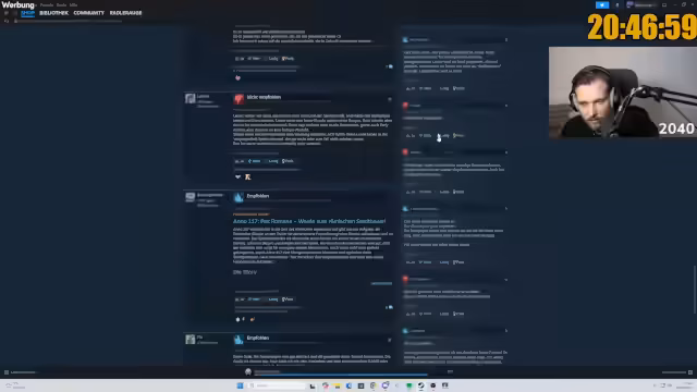 00:46:48Der Streamer äußert Unverständnis für die Performance-Kritik an Anno 117. Er spekuliert, dass diese Kritik von Spielern stammen könnte, die versuchen, das neue Spiel mit derselben Hardware wie Anno 1800 zu spielen und dann enttäuscht sind, dass es nicht besser läuft. Er betont, dass sein Spiel mit 172.000 Einwohnern bei dreifacher Geschwindigkeit 'wie eine Eins' läuft und hinterfragt die Notwendigkeit von 120 FPS in einem Aufbauspiel. Er argumentiert, dass der Umfang des Spiels so gigantisch ist, dass Bugs unvermeidlich sind und dass die Erwartung an ein 100% bugfreies Spiel unrealistisch ist. Er kritisiert die 'früher war alles besser'-Mentalität und hebt hervor, dass Anno 117 ein 'gigantisches Fest' für Fans sei.