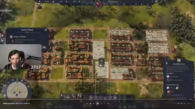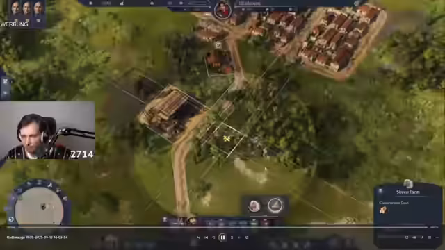 01:20:35Der Streamer gibt die ersten positiven Eindrücke von Anno 117 wieder. Er hebt den befriedigenden Sound beim Platzieren von Gebäuden hervor. Ein wichtiges neues Feature sind die Konturlinien, die eine präzere Platzierung von Gebäuden ermöglichen. Der Soundtrack des Spiels wird als passend für Schönbauer beschrieben. Es wird die fließende Integration von Farmen in die Stadt gezeigt, was dem organischen Wachstum Rechnung trägt.