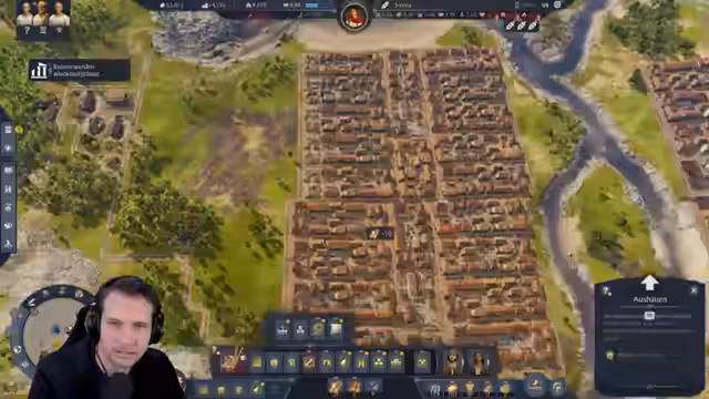 00:22:30Während des Runs analysiert der Streamer den Rekord von Vic, der 106.000 Einwohner erreicht hat. Besonders Vics Strategie, sehr viel Brot zu produzieren, wird als effektiver Geldtrucker identifiziert, der den Kauf weiterer Inseln beschleunigt. Der Streamer vermutet, dass Vic durch manuellen Handel mit Schiffen seine Effizienz steigerte. Im Gegensatz dazu stockt der aktuelle Run, da die Produktionen laufend ausfallen und zu wenig Holz zur Verfügung steht, was den Aufbau massiv verlangsamt und die Motivation senkt.