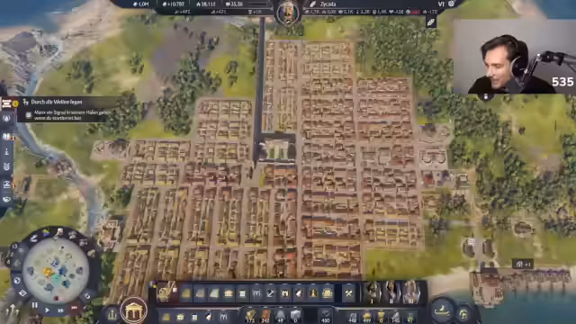 04:59:57Der Streamer spielt in einer exklusiven Vorab-Version, die er nur bis Donnerstag zeigen darf und nach der er in ein 'tiefes Loch' fallen wird. Es wird betont, dass dies keine Demo ist, sondern eine frühzeitig zugängliche, repräsentative Version des Spiels. Trotzdem gibt es Embargos, die das Zeigen bestimmter Inhalte verbieten, wie Stufe-4-Gebäude oder vollständige Warenketten. Eine verbuggte Quest kann nicht angenommen werden, was als Ärgerpunkt erwähnt wird.