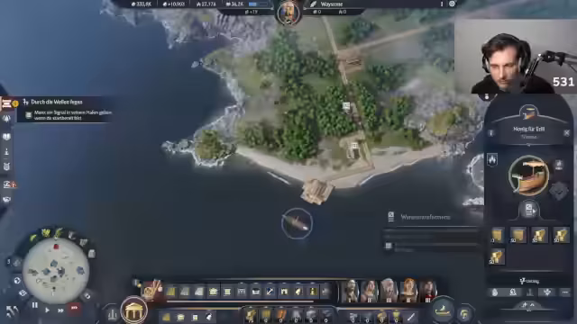 04:51:51Im Stream werden die kommenden DLCs für Anno 117 besprochen. Es ist bestätigt, dass der erste DLC eine Kontinentalinsel mit Vulkan beinhalten wird, die als die größte Insel aller Zeit angekündigt ist. Nach der Durchführung der ersten Kampagnenteile mit Marcia und Markus, bei denen eine ganze Piratenflotte versenkt wurde, steht nun das Farmen von Ansehen im Vordergrund, um Items für die Gouverneursvilla zu erhalten. Eine Quest verlangt hierbei 50.000 Ansehen, was als Herausforderung beschrieben wird.