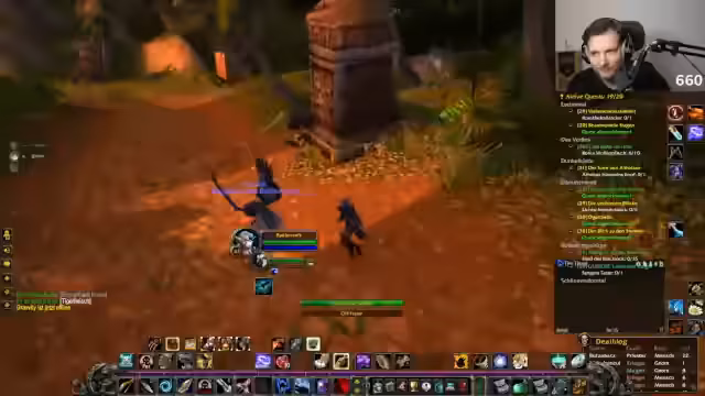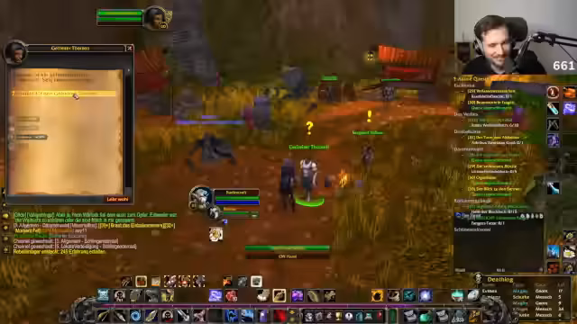 04:31:23Der Streamer installiert 'Needplates' zur besseren Übersicht und passt die Benutzeroberfläche an, um Quest-Gegenstände effizient zu verwalten. Er diskutiert die Herausforderung, Quests in Gebieten wie Dämmerwald und Schlingendorntal abzugeben, und erwähnt die Notwendigkeit, sein Inventar von nicht mehr benötigten Gegenständen zu befreien. Dabei plant er, nach Booty Bay zu reisen, um offene Quests abzuschließen und neue Fähigkeiten zu erlernen.