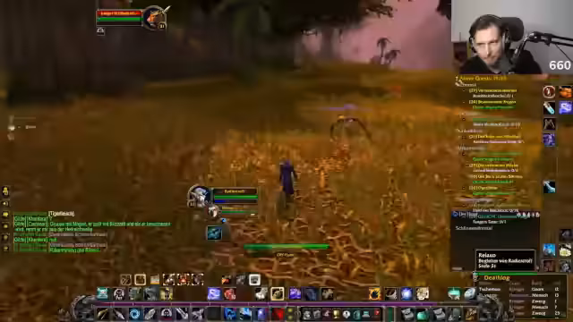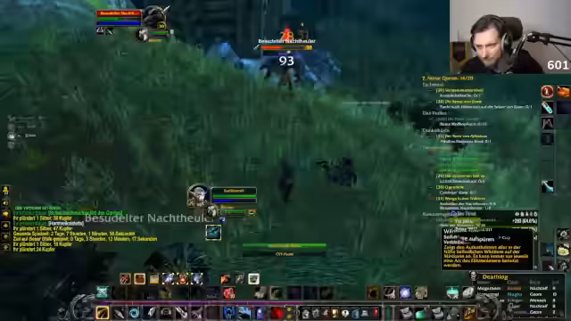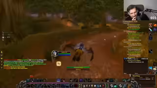 01:10:38Technische Probleme dominieren: Bitrate-Einschränkungen (Reduzierung von 6000 auf 3000 kbps), OBS-Störungen und fehlerhaftes Auto-Layering-Addon führen zu ungewollten Gruppierungen. Der Chat bestätigt Layering-Risiken und gibt Tipps zum Abschalten. Gleichzeitig erklärt er historische Worgen-Lore (Arugal, Geißelkrieg), warum sie in Classic nicht spielbar sind, und startet eine Kontroverse über Fandom-Reaktionen. Als Fickhahn-Meme diskutiert wird, klärt er dessen Ursprung aus der Juwe-Community auf. Matthias’ Hardcore-Tod wird thematisiert – ein Krieger, der in Mines starb.