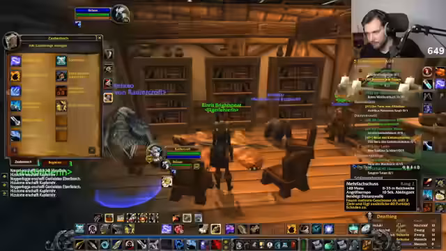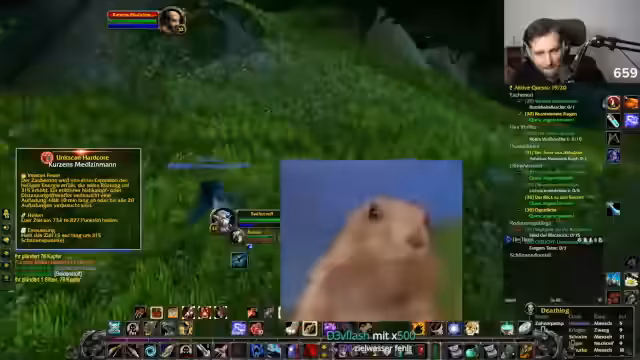 02:47:31Nach einem ungewollten Tod als Mensch plant der Wechsel zu einem Level-1-Charakter in Nordheim für rollenspielorientiertes Weitermachen. Als Beispiel für Hardcore-Drama wird ein Naxxramas-Raid-Zwischenfall genannt: Ein Tank zog einen Reiter in die Gruppe, was einen kompletten Wipe verursachte und die Community schockierte.