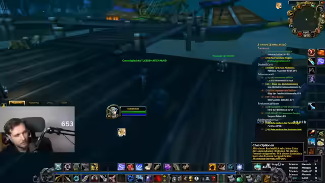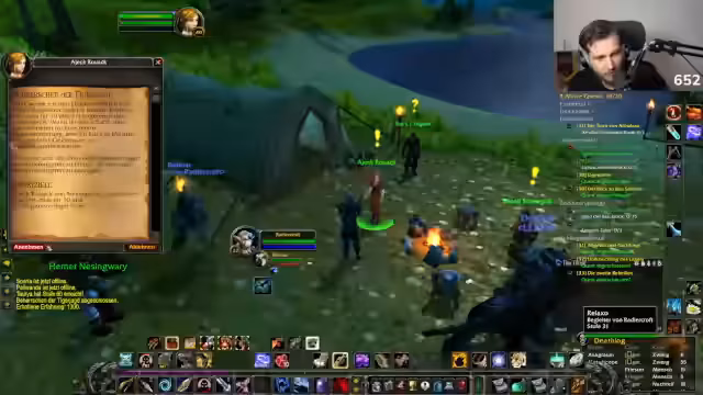 06:32:40Der Spieler sucht aktiv nach Gruppenmitgliedern für anspruchsvolle Elite-Quests, wendet sich dabei an potenzielle Mitspieler wie Sarah. Gleichzeitig bereitet er sich auf spezifische Quests vor, etwa in den Zwergengebieten, und erklärt die Notwendigkeit, bestimmte Ziele wie Scharfschützen gezielt auszuschalten. Die Logistik von Quest-Verteilung und Gruppenkoordination wird detailliert besprochen.