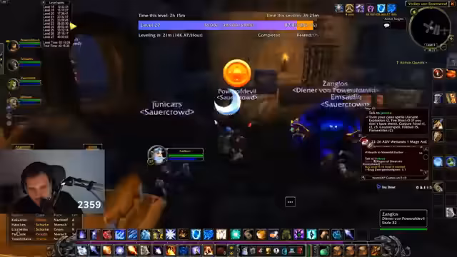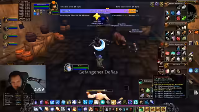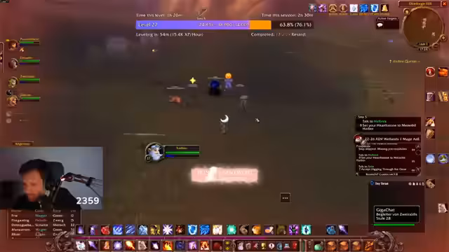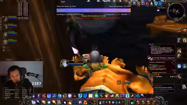06:49:31Nach dem Drama kehren die Spieler zum Spielen zurück und sprechen über Leveling-Strategien, Kochrezepte aus WoW und die Herausforderungen im Spiel. Der Streamer erwähnt, dass er ein Kochbuch geschenkt bekommen hat, das auf WoW-Rezepte basiert, und es nutzt, um im Spiel zu kochen, was zu Diskussionen über in-game Lebensmittel führt. Es folgt eine Auseinandersetzung mit AOE-Farming-Techniken und den Schwierigkeiten, als Mage gegen Caster-Gegner anzukämpfen, insbesondere in überfüllten Gebieten. Die Gruppe koordiniert sich für weitere Quests, teilt Tipps zum Inventarmanagement und reflektiert über den Einfluss von Ausrüstungsqualität auf den Gameplay-Erlebnis.