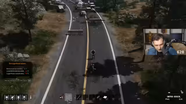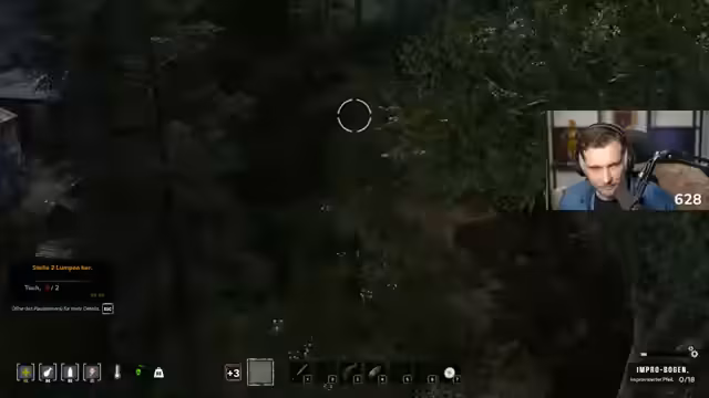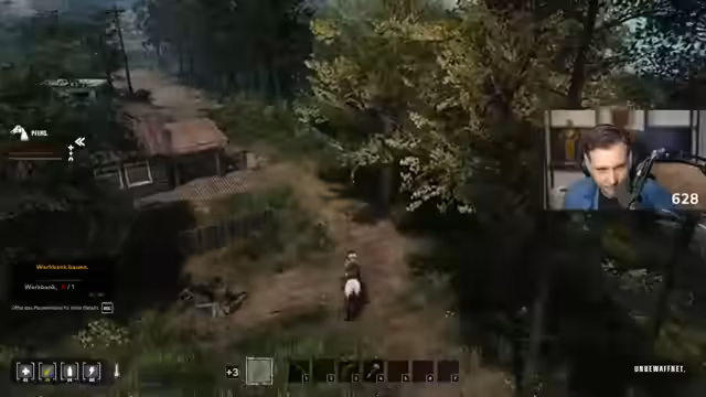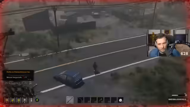 02:06:17Der Streamer beginnt den Stream mit großer Begeisterung über die Spielwelt. Er preist die Möglichkeit, auf Gartenzwergen herumzuspringen und beschreibt dieses Feature als exzellente Umsetzung für eine Zombie-Apokalypse, auch wenn er realistischweise innerhalb von fünf Minuten sterben würde. Im weiteren Verlauf werden erste Gameplay-Elemente getestet, wie das Reiten, die Handhabung von Waffen wie eine Machete und das Auffinden von Loot. Dabei stellt er fest, dass das Gameplay ein ähnliches, aber harten Feeling wie in Project Zomboid vermittelt. Auch die Grafik und der allgemein dreckige, realistic Stil des Spiels werden positiv hervorgehoben.