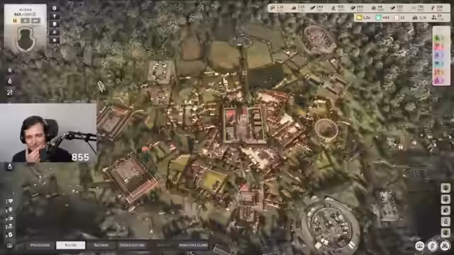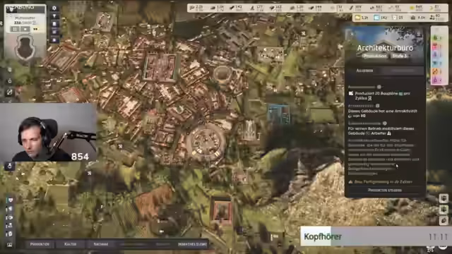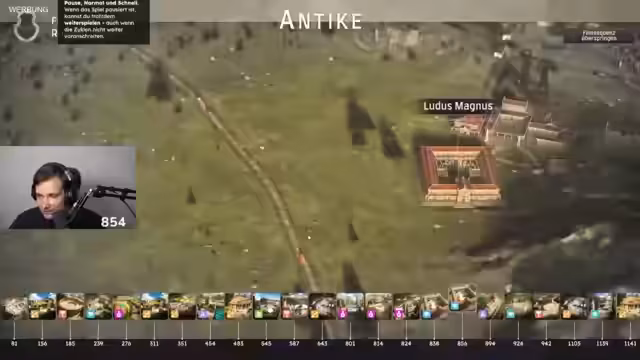 00:30:40Der Streamer beginnt einen neuen Durchlauf in Memoria Polis und erklärt die Grundlagen. Man startet mit einer Villa und muss klassische Produktionsgebäude für Bevölkerung und Ressourcen errichten. Besonderheiten sind die dynamische Stadtplanung, bei der Bewohner selbst entscheiden, wo sie wohnen, und die systematische, schnelle Expansion, um den kulturellen und administrativen Anforderungen wie dem Bau von Foren und Kulturgebäuden gerecht zu werden, um nicht abgesetzt zu werden.