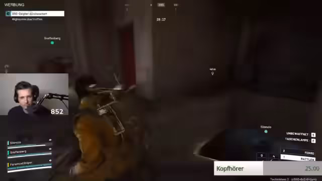 06:09:37Der Streamer erkundet die Spielmechaniken von Arc Raiders und stößt auf technische Hürden beim Einladen von Freunden in die Spiellobby. Während er über verschiedene Bauteile wie Schilder und ein angebliches Scharfschützengewehr mit Zielfernroher spekuliert, welche er noch nicht亲眼 gesehen hat, werden auch grundlegende Interaktionen wie das Verlassen und Wiedereintreten der Lobby thematisiert. Es besteht Unklarheit darüber, wer den anderen einladen kann, was zu kurzfristigen Lobby-Wechseln führt, um die Gruppe zu formen.