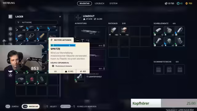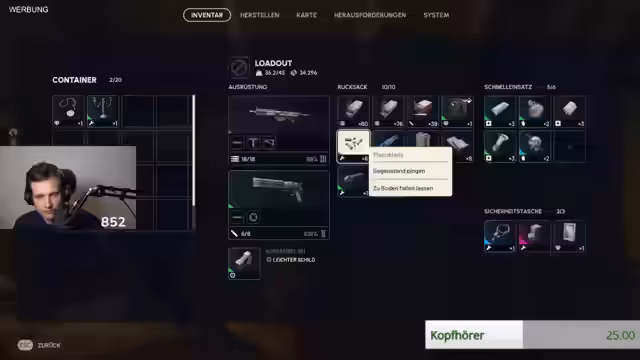 06:06:42Nachdem Verstärkung eingetroffen zu sein scheint, bereitet sich das Team auf den finalen Einsatz vor. Der Streamer kauft Munition und Ausrüstung ein, ist sich aber unsicher über die genauen Anforderungen und ob der erwartete Mitspieler 'Lenzo' tatsächlich erscheint. Die Eile ist geboten, da der Playtest bald endet. Trotzdem nimmt er sich Zeit für eine letzte Inventar- und Ausrüstungsprüfung, um bestens für die bevorstehende Runde gerüstet zu sein.