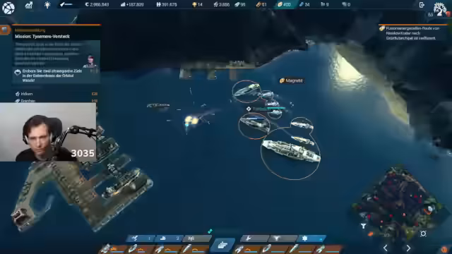 02:07:08Es wird ein Upgrade für den Traumhafen eingeleitet, jedoch wird ein inaktiver Generator mit Treibstoffmangel festgestellt. Nach dem Start des ersten Reaktors stellt der Streamer fest, dass ein zweiter Reaktor benötigt wird, der auf einer der kleinen Inseln aktiviert werden muss. Dies führt zur nächsten Krise: Ein Mangel an Graphen wird diagnostiziert, der den Ausbau gefährdet. Der Handel mit Graphen gestaltet sich als mühsam, und die Handelsgenehmigung steht kurz vor dem Ablauf, was eine Entscheidung über eine Verlängerung erfordert.
