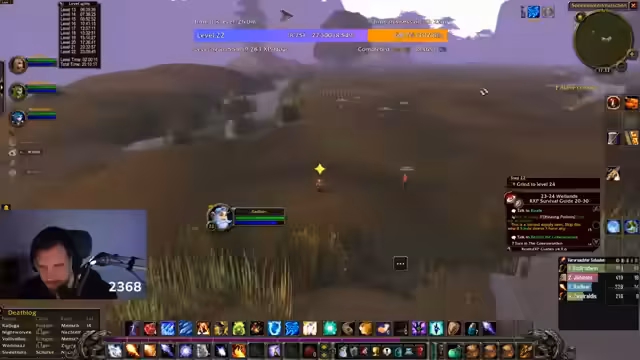 04:09:37Nach der Pause trifft sich die Gruppe wieder, um gemeinsam zu leveln. Es werden neue Quests angenommen und Ressourcen wie Wollbinden geteilt. Ein Teammitglied stirbt, was zu einem roten Punkt auf der Karte führt. Die Gruppe beschließt, weiterhin Krokodile zu jagen, obwohl es anstrengend ist, und strategisiert über die Verteilung von Talentpunkten und die Wahl von Fähigkeiten wie 'Feuerschlag' für einen Vorteil. Der Fokus liegt auf Effizienz und XP-Sammlung.
