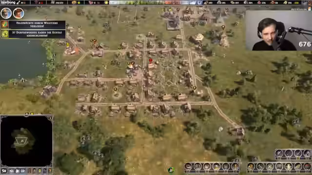 02:04:01Der Streamer diskutiert mit der Community über verschiedene Gameplay-Aspekte. Er analysiert die Schwierigkeitsgrade des Spiels und vergleicht es mit anderen Titeln wie Banished. Er nutzt den Fünffach-Speed, um effizienter zu bauen und stellt sein Layout aufgrund von Brandgefahren und Raubtierangriffen um. Die Interaktion mit der Zuschauerschaft hilft ihm, Probleme wie die falsche Platzierung von Gebäuden (Sammler statt Fischer) zu erkennen und zu korrigieren.