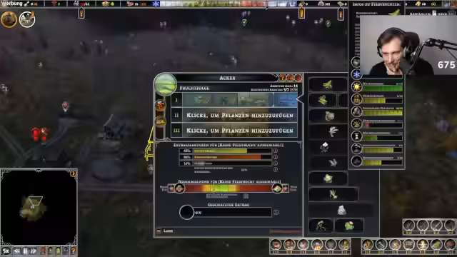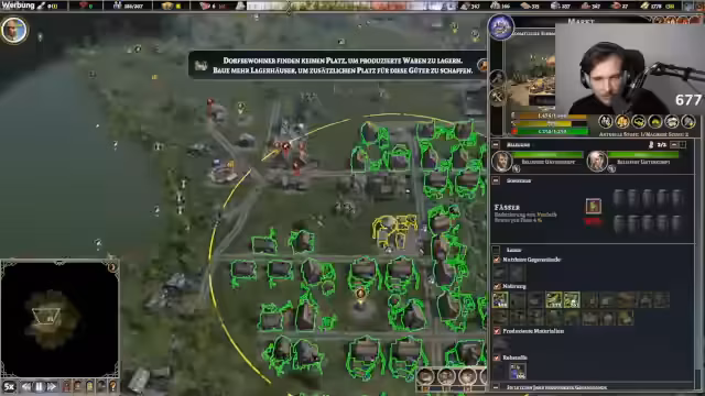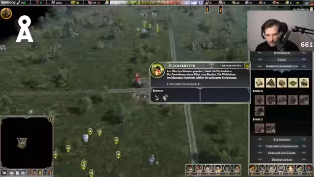 01:13:16Der Stream konzentriert sich auf den Aufbau einer Siedlung im Spiel Farthest Frontier. Zunächst werden grundlegende Strukturen wie ein Stapelplatz, eine Sägegrube und ein Lagerhaus errichtet, um Ressourcen wie Holz und Bretter zu verwalten. Parallel wird die Nahrungsproduktion durch die Einrichtung eines Rübenkellers und die Beschäftigung eines Sammlers gesichert. Die Planung erfolgt strategisch, um Reichweiten der Gebäude optimal zu nutzen und die Versorgung der Bevölkerung sicherzustellen.