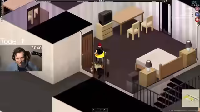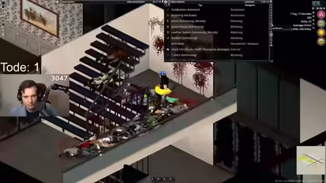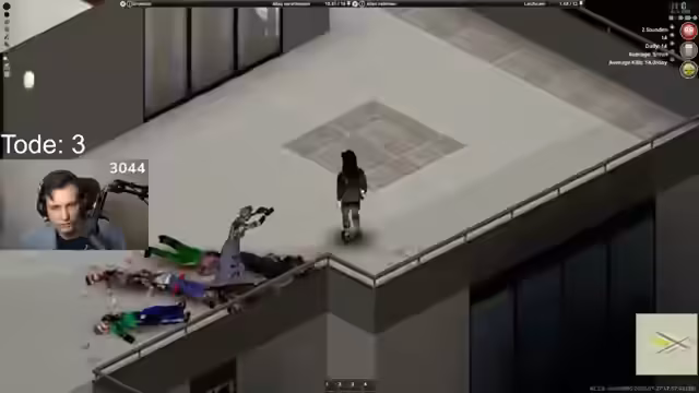 00:49:10Der Streamer arbeitet weiter daran, sich den Weg durch das Hochhaus zu bahnen. Die Haupttaktik, Zombies über die Brüstungen zu locken und fallen zu lassen, bleibt essenziell, ist aber extrem aufwendig und stressig. Er findet Ressourcen wie einen Schinken und einen Schwimmreifen, der sich als nützlich erweist. Immer wieder stehen ihm unvorhergesehene Hindernisse im Weg, wie versehentliches Fallen in niedrigere Stockwerke. Der Druck, an Gestank oder Auszehrung zu sterben, bleibt bestehen. Die erste Wette der Zuschauer auf das Überleben der ersten 12 Stunden wird gewonnen.